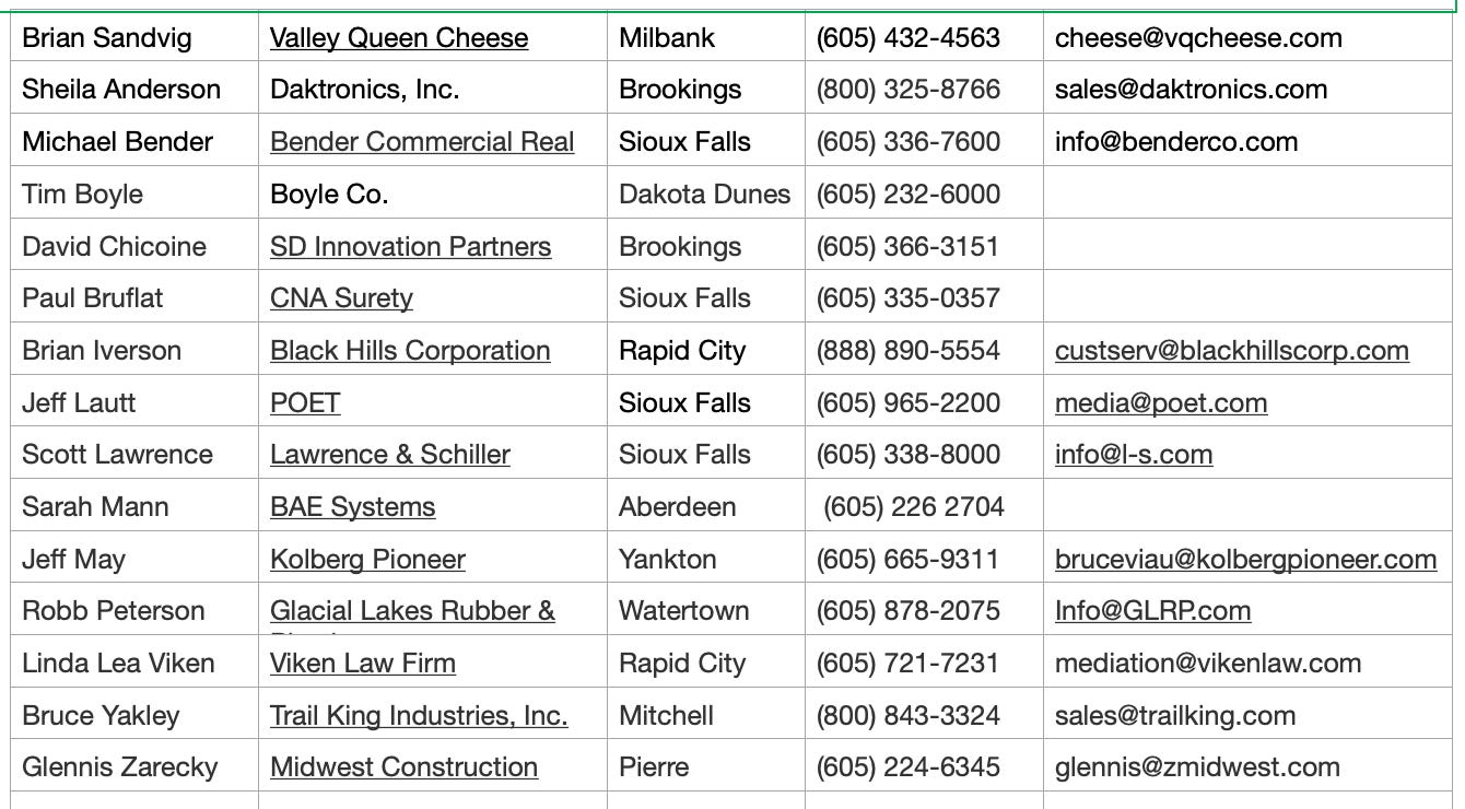 ACTION ALERT! Call SD State Chamber of Commerce Board Members